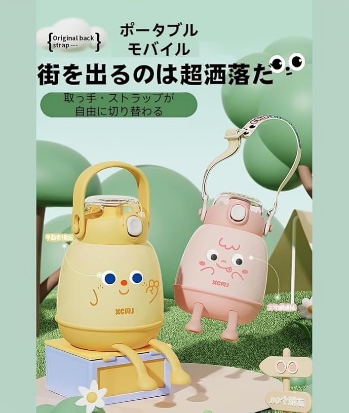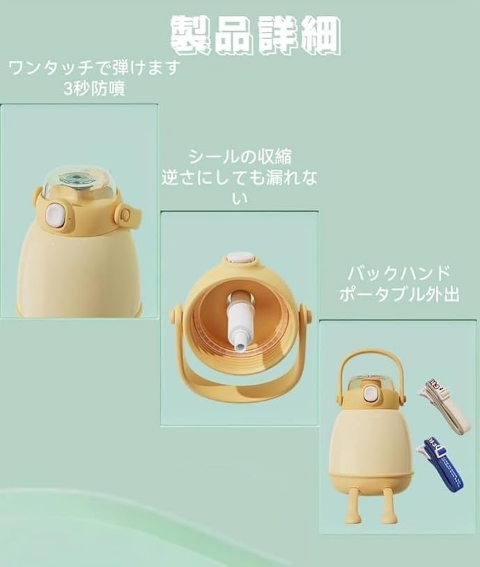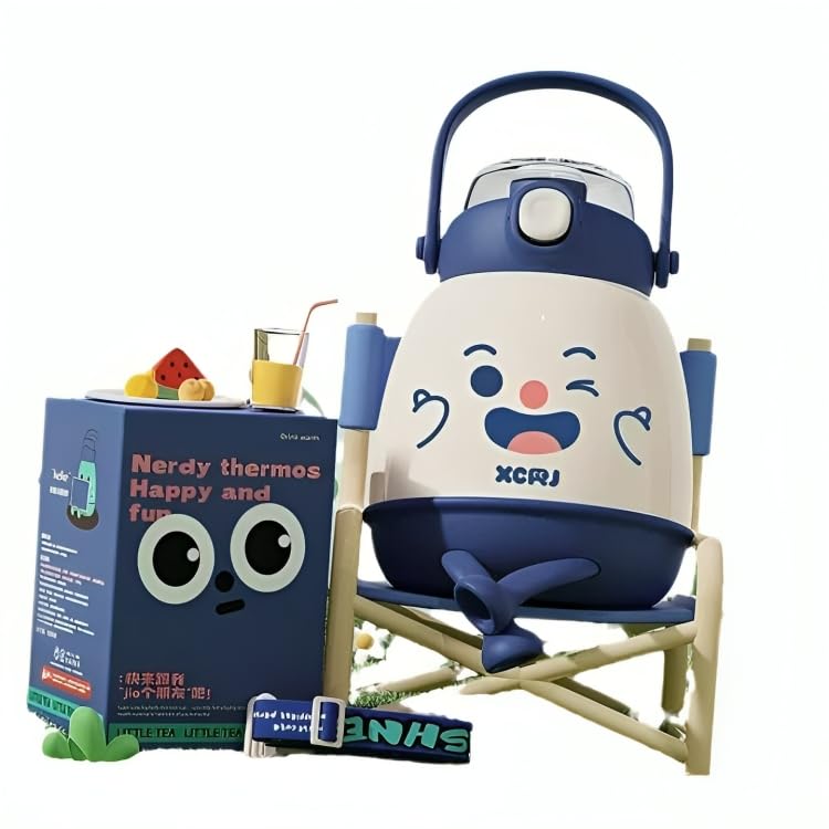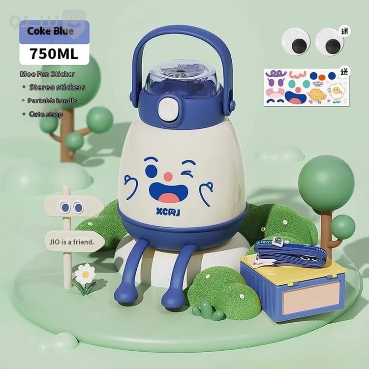 Generic - زجاجة ماء كرتونية 3 في 1 – شفاط و3 طرق للشرب، تصميم لطيف مع حزام للحمل للمدرسة والرحلات. (ابيض في ازرق)
