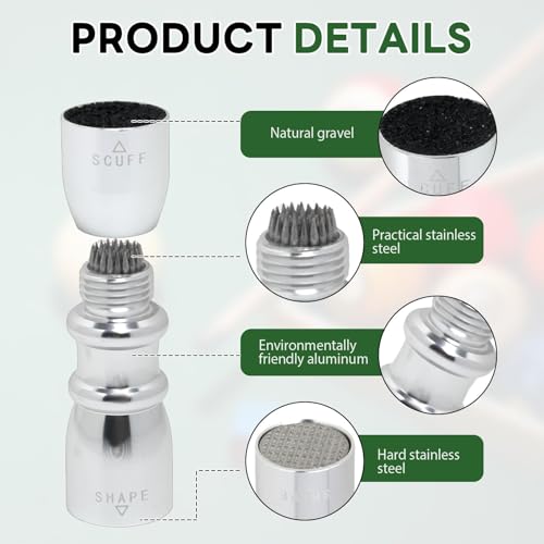 - تصميم متعدد الاستخدامات 3 في 1: يجمع أداة تشكيل طرف العصا هذه بين ثلاث أدوات أساسية - جهاز التهوية والسكاف والسدادة - في تصميم واحد مضغوط. يعمل جهاز التهوية على تنعيم أطراف العصا لامتصاص أفضل للطباشير، ويعيد تابر تشكيل الأطراف من أجل التوحيد، ويخلق الكشط قوس قبة دقيق لتعزيز الدقة والتحكم.