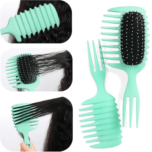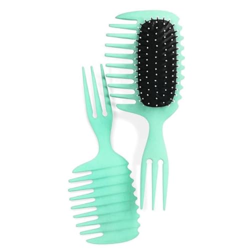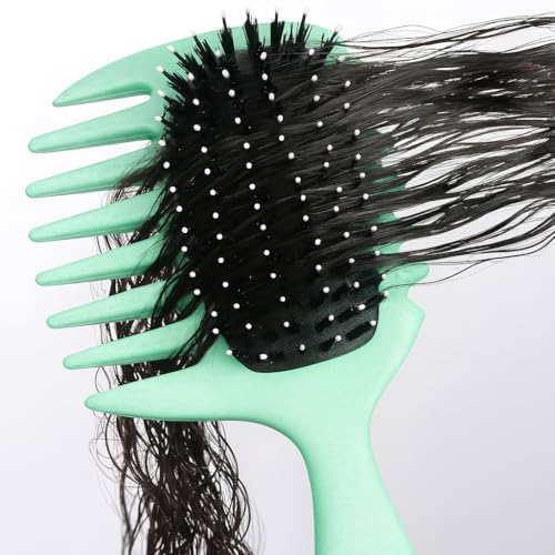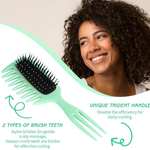 SNS SECRET NAILS SYSTEM - فرشاة تصفيف الشعر 3 في 1 للشعر المجعد من اس ان اس - فرشاة فك تشابك الشعر الرطب والجاف مع مشط واسع الأسنان وريش رفع - أداة احترافية لتشكيل وتحديد وتصفيف التجعيدات (اخضر مينت)