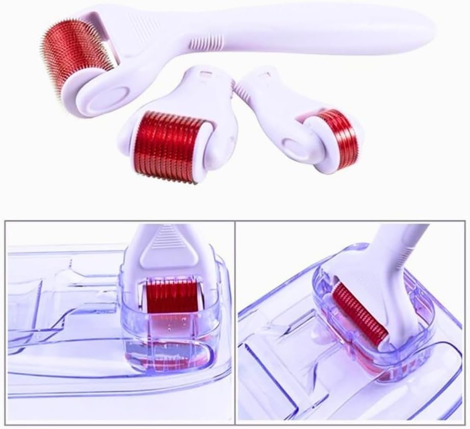 Generic - مجموعة ديرما رولر 3 في 1 للوجه والجسم - بكرة إزالة الجلد الدقيقة بإبرة دقيقة تقلل التجاعيد والندبات وعلامات التمدد - 3 رؤوس قابلة للاستبدال