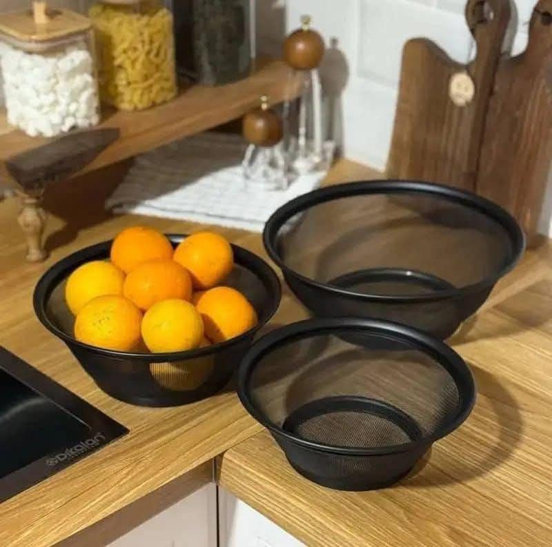 - كل مصفاة مجهزة بقاعدة سفلية معززة لتحقيق ثبات فائق أثناء الاستخدام، مما يمنع التذبذب ويضمن التعامل الآمن والمريح حتى مع المحتويات الساخنة.