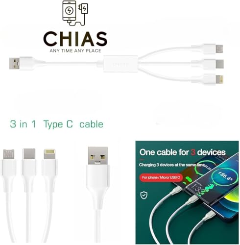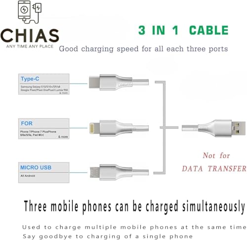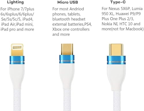 Generic - كابل شحن سريع 3 في 1 للموبايلات نوع سي ومايكرو وIOS، بيانات ذكي بـ3 منافذ