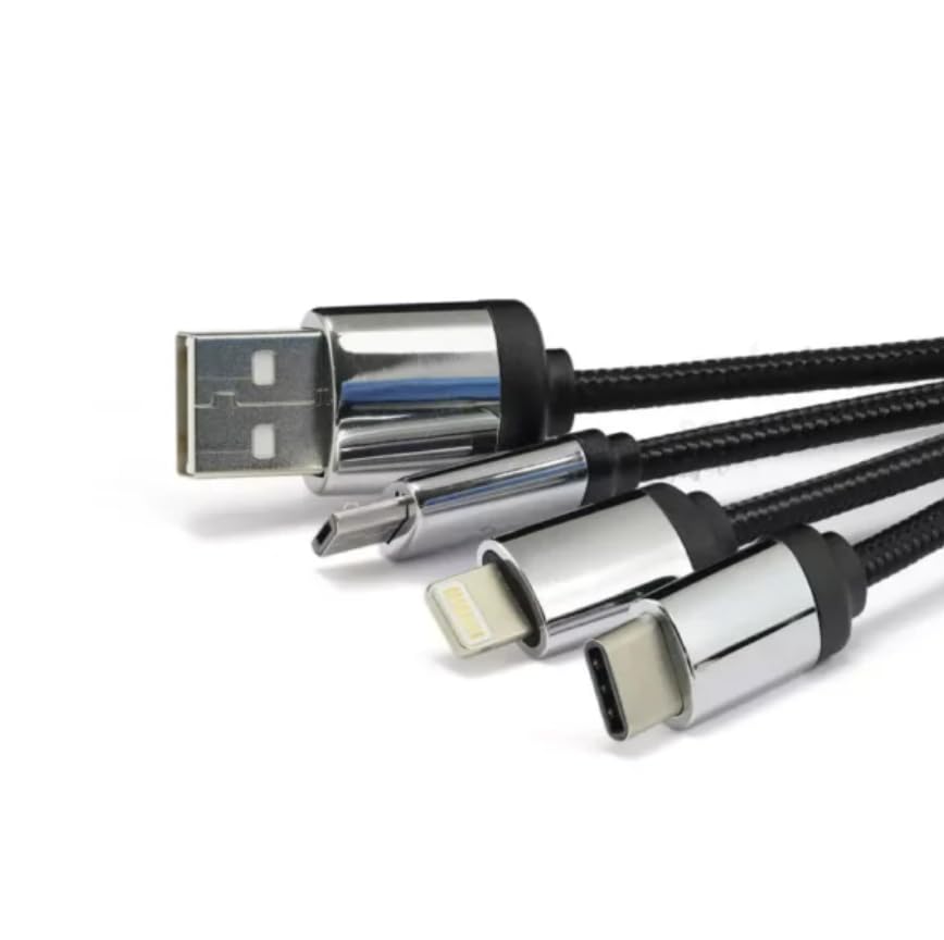 Generic - كابل USB للشحن السريع 3 في 1 مع 3 منافذ متوافق مع جميع الموبايلات والتابلت، سلك شحن متعدد مضفر متين للمنزل والمكتب والسفر