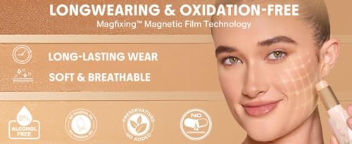 - تغطية كاملة مناسبة لوضع طبقات من المكياج، تركيبة غنية بالسيروم: تركيبة خفيفة الوزن ومعززة بالسيروم تنزلق بسلاسة على البشرة، وتمنحك تغطية مزودة بمسامات للتهوية ومناسبة للتغطية الخفيفة والكاملة. سيروم غني بمكونات مغذية للبشرة ترطبها وتمنحك تغطية سلسة لنضارة صحية ومميزة، ويمتزج بسلاسة مع البشرة لمنحك لمسة نهائية مطفية تبقى خالية من اللمعان طوال اليوم.
