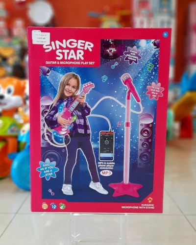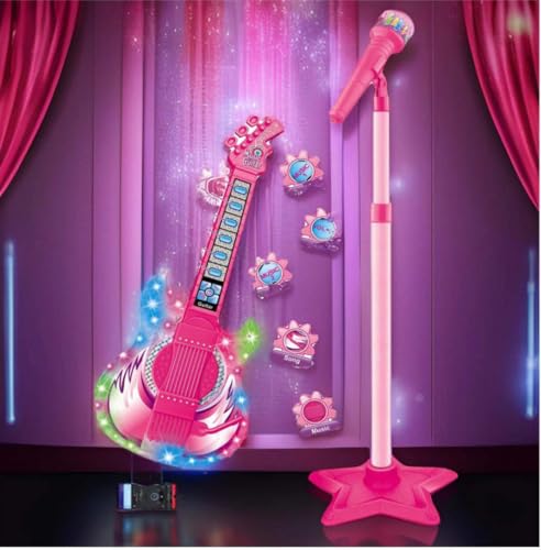 Generic - مجموعة لعبة جيتار وميكروفون مع حامل 3 في 1، جيتار فريد متعدد الوظائف يمنح الأطفال تجربة موسيقية لا تنسى، جيتار وميكروفون للأطفال