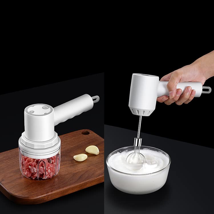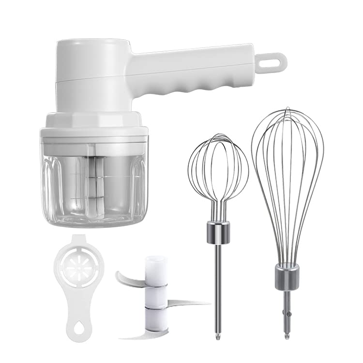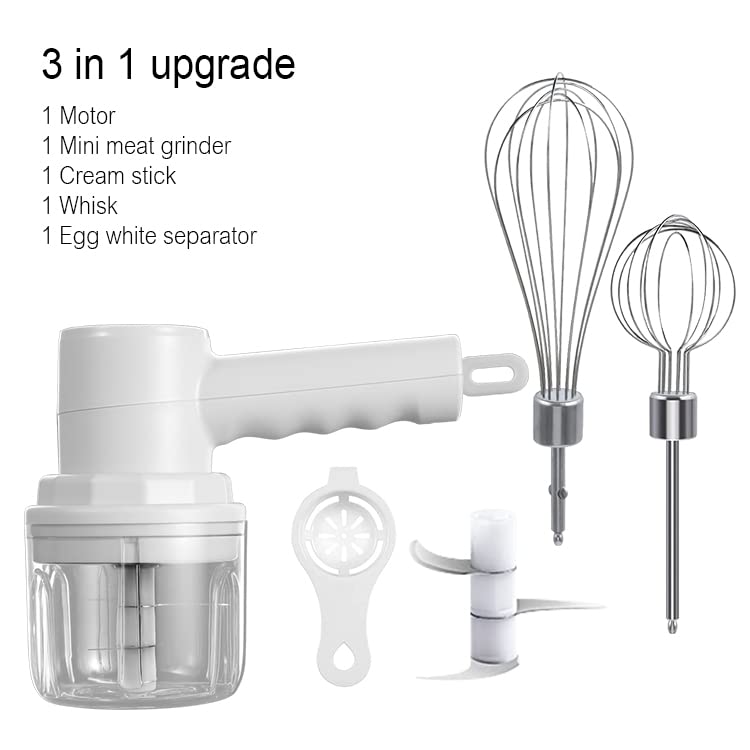 Generic - مضرب ومحضر طعام لاسلكي محمول باليد 3 في 1 مع فاصل بيض لخبز البسكويت والبراونيز والكعك ومفرمة الثوم الصغيرة وهراسة ابيض 750.0 واط