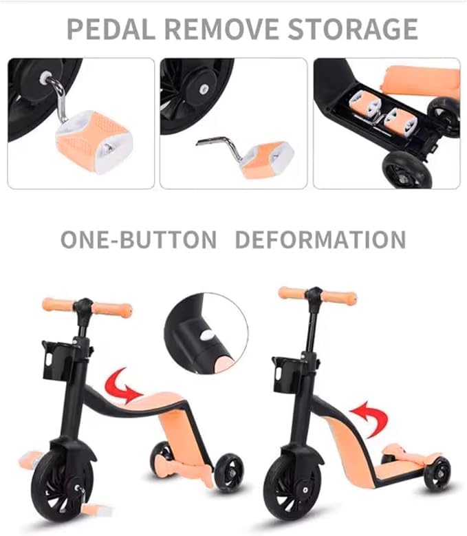 - تصميم متعدد الاستخدامات: يتحول السكوتر القابل للتحويل 3 في 1 من ركوب الدراجة إلى دراجة التوازن إلى سكوتر الوقوف، ويتكيف مع نمو طفلك وتطوير مهارات جديدة