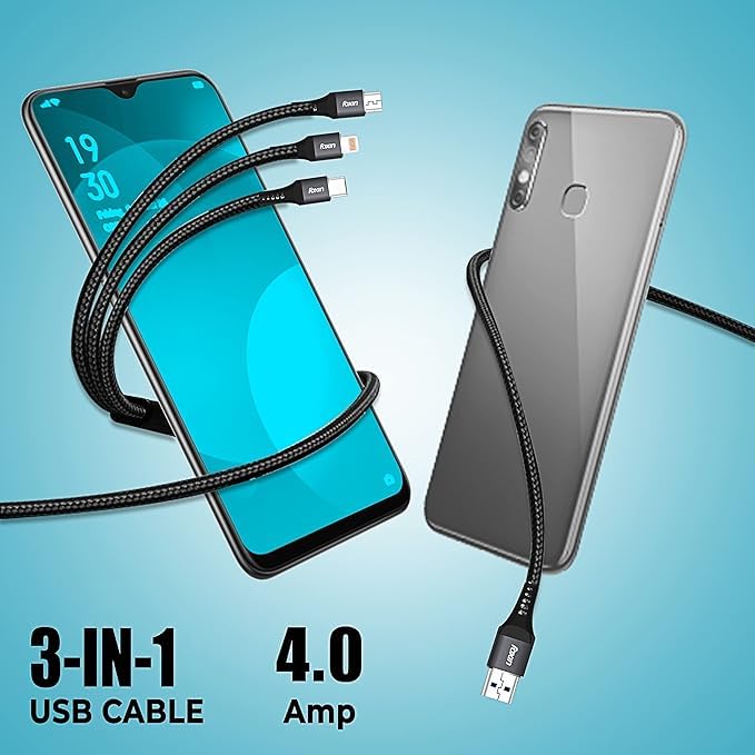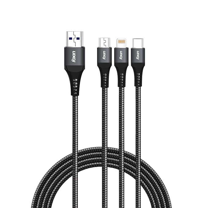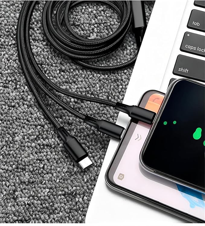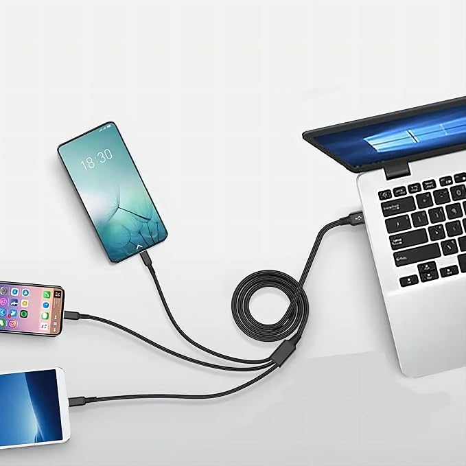 - كابل شحن 3 في 1: يدعم شحن أجهزة متعددة في نفس الوقت بفضل التصميم الثلاثي المتوافق مع منافذ مختلفة