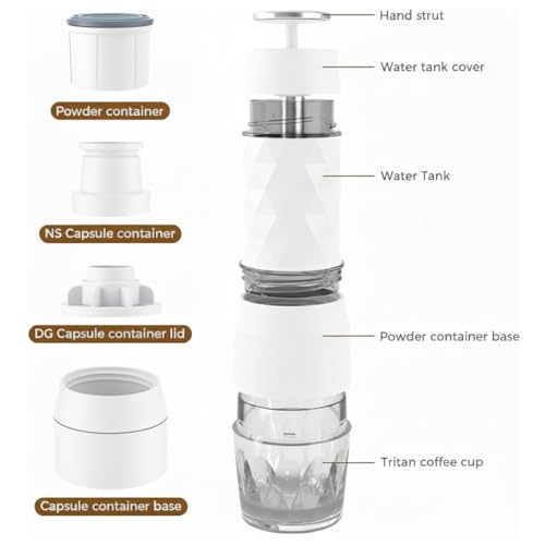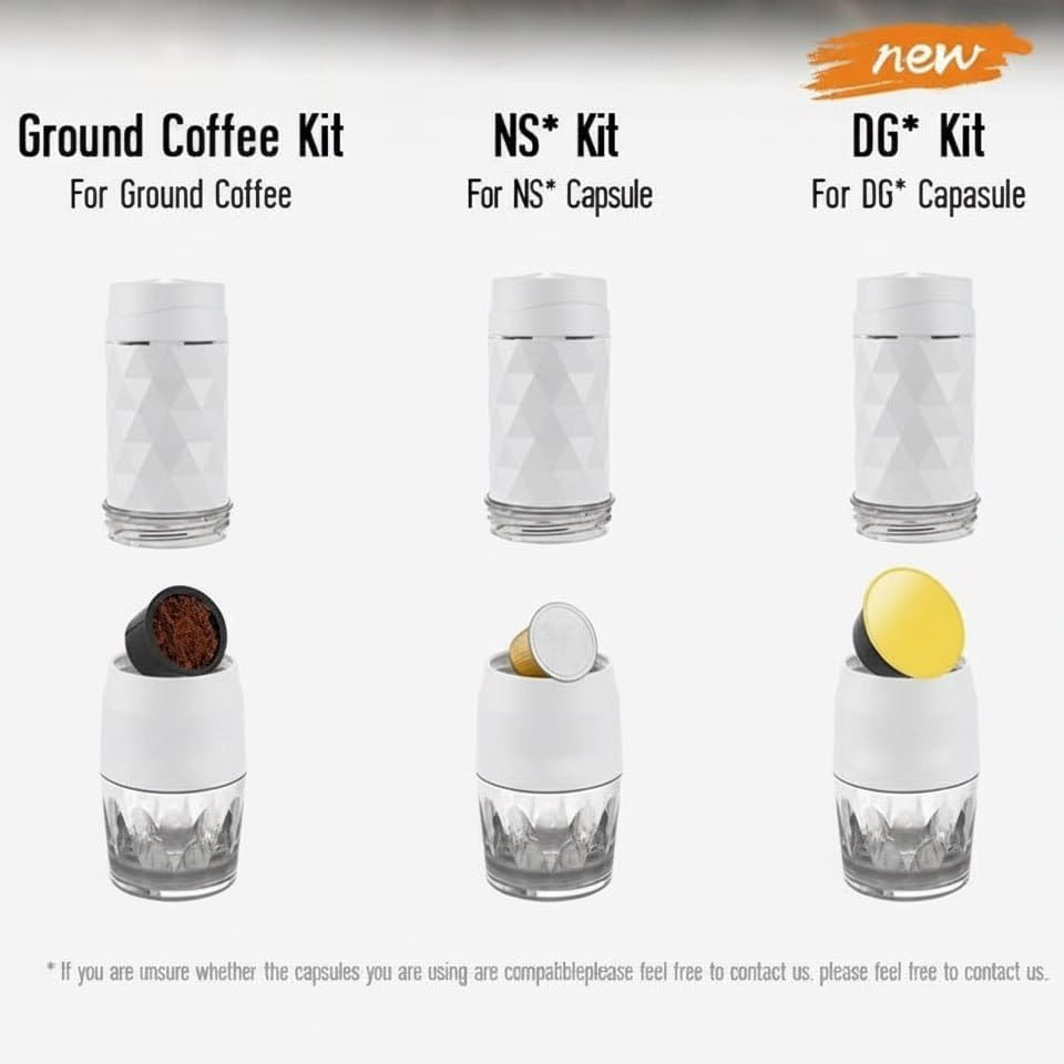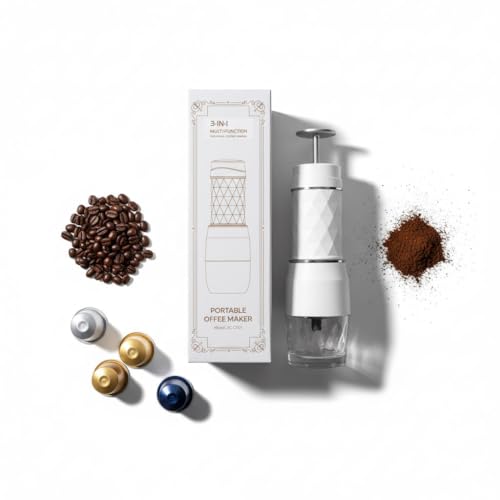 Generic - ماكينة صنع القهوة المحمولة 3 في 1 لإسبريسو قوي وكريمي – متوافقة مع البن المطحون وكبسولات نسبريسو – تصميم أنيق ومثالية للسفر والاستخدام اليومي (ابيض)