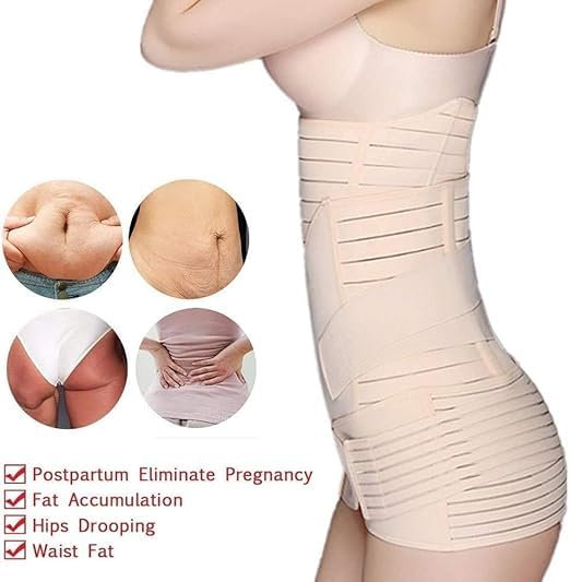 Generic - حزام تنحيف الجسم 3 في 1 لدعم ما بعد الولادة ،مجموعة احزمة شد ودعم الجسم للنساء لما بعد الولادة، احزمة للبطن والخصر والحوض، ملابس داخلية للتنحيف (بيج, XXXL)، قطن
