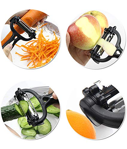 shun yi - مقشرة خضروات وفاكهة 3 في 1 من ستانلس ستيل متعددة الوظائف مستقيمة ومسننة لتقطيع شرائح من الخضروات والبطاطس والجزر (الوان متنوعه)