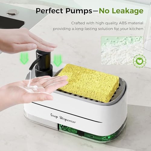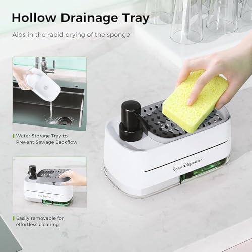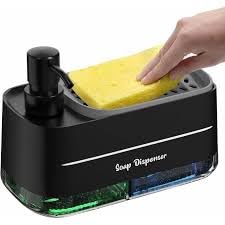 Generic - منظم حوض المطبخ الشامل 3 في 1: موزع صابون بمضخة ذكية، حامل إسفنجة مدمج، وقسم للسلكة - قاعدة شفافة - موفر للمساحة والمنظفات
