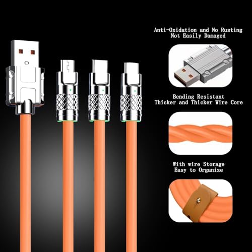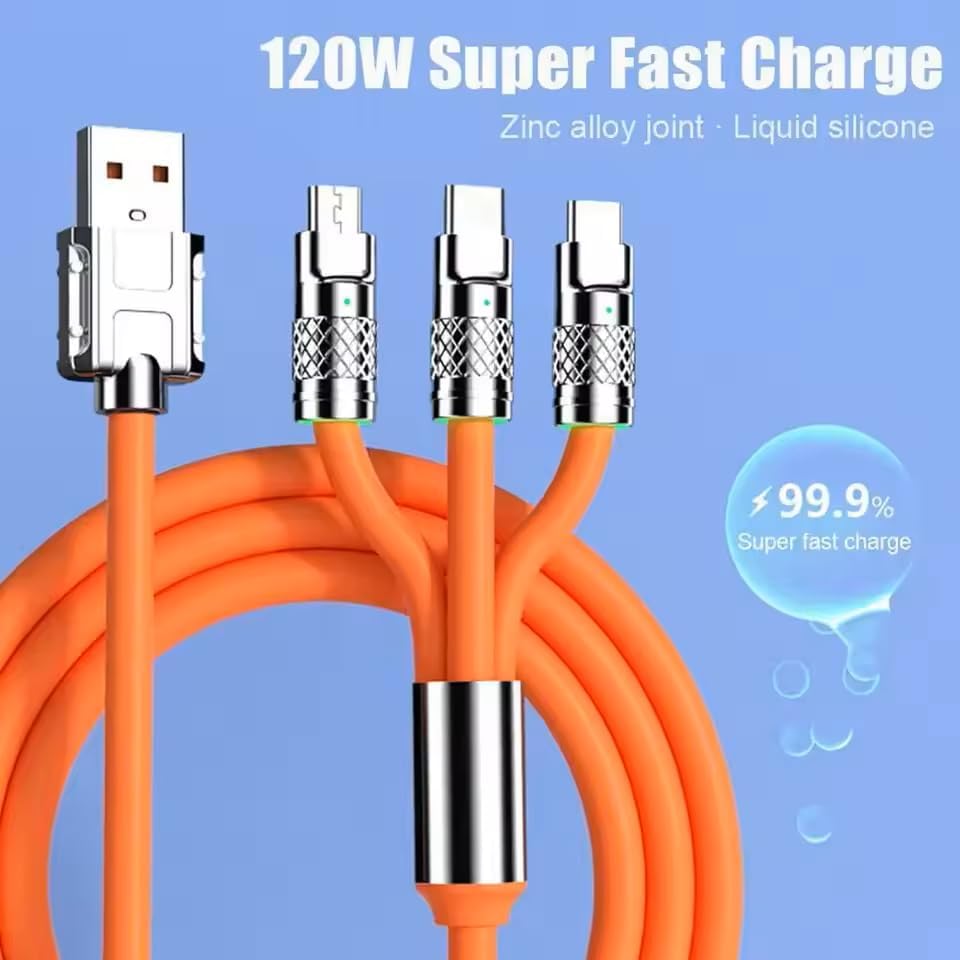 Generic - كيبل شحن ونقل بيانات عالمي متعدد 3 في 1، متوافق مع ايفون، سامسونج، نوع سي، منفذ يو اس بي. شحن سريع 120 واط، 1.2 متر