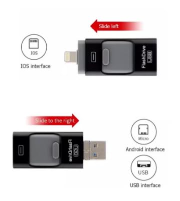 Generic - ذاكرة فلاش USB 3 في 1 قابلة للتوسيع او تي جي بندريف لأجهزة آيفون واي باد وأندرويد والكمبيوتر بسعة 128 GB - أسود