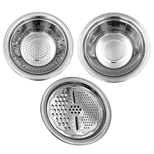 generic - قطاعة خضروات 3 في 1، مبشرة مطبخ متعددة الأغراض ومبشرة جبن مع سلة وطبق صرف من الفولاذ المقاوم للصدأ، مصفاة دقيقة، قطاعة للخضروات والفواكه والشوكولاتة والجبن، موديل 156550
