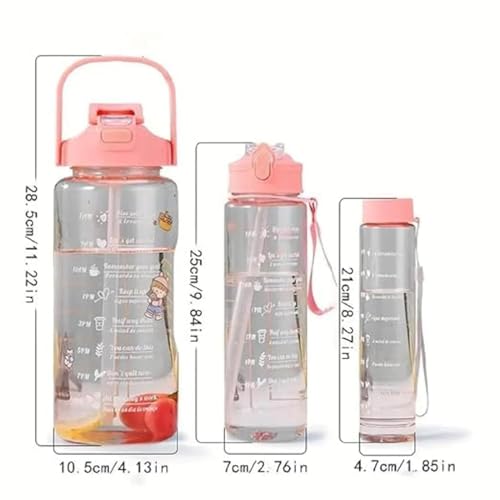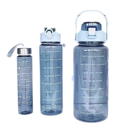 Spaceshoop - مجموعة زجاجات مياه 3 في 1 مع علامات زمنية، زجاجات شرب تحفيزية بسعة 2 ل/ 900 مل/ 300 مل مع شفاطة للمدرسة والجيم والمكتب والطلاب والمنزل والسفر والرحلات (أزرق)