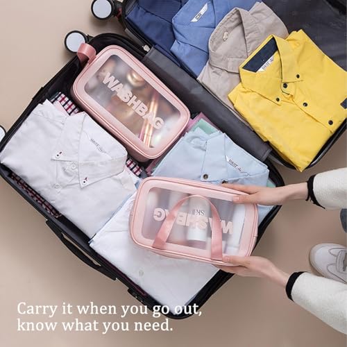 generic - مجموعة شنط أدوات الزينة 3 في 1 مقاومة للماء للنساء - منظم شنطة غسيل للمكياج ومستحضرات التجميل وأساسيات السفر - شنط تخزين محمولة وقابلة للغسل من مواد مستوردة وممتازة