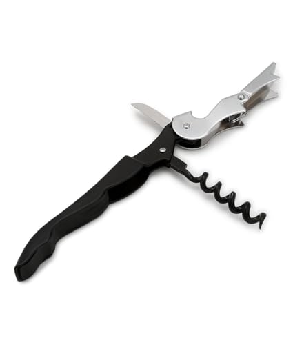 I'M NATURALS (LABEL) - فتاحة نبيذ 3 في 1 مصنوعة من الستانلس ستيل الكربوني مع سكين وفتاحة زجاجات بتصميم مريح بلون اسود
