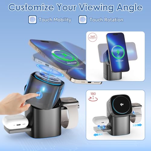 - 🔁تصميم قابل للسحب: دوران باللمس وتصميم قابل للسحب: تتميز قاعدة الشحن اللاسلكية بدوران كهربائي مبتكر 180 درجة، ويمكن شحن الموبايلات المحمولة غير المغناطيسية بشكل مسطح من أجل توافق أوسع، كما يوفر التصميم المخفي مساحة أكبر.