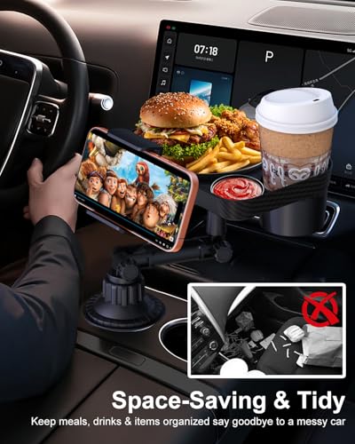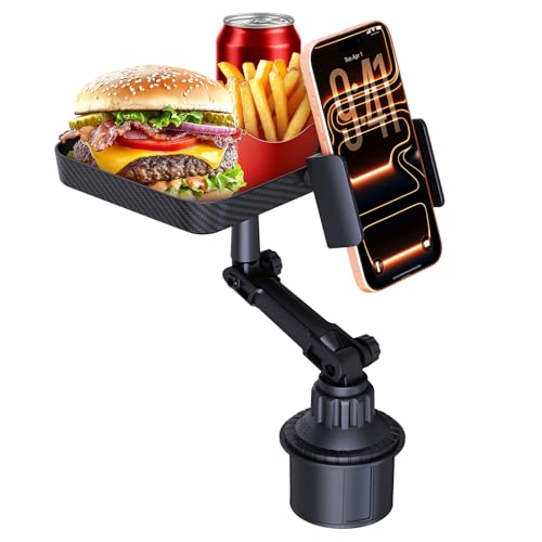 Vitog - حامل أكواب للسيارة 3 في 1 مع حامل موبايل قابل للدوران 360 درجة وصينية طعام متعددة الوظائف للسيارة للأكل والشرب وتركيب الموبايل مناسب للسفر والسيارات والشاحنات والقيادة اليومية