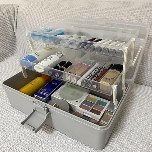 Generic - صندوق تخزين بلاستيكي من 3 طبقات - منظم شفاف كبير مع مقبض، حاوية قابلة للتكديس متعددة الاغراض للاكسسوارات والادوية والاسعافات الاولية والحرف اليدوية والالعاب ومستحضرات التجميل واللوازم المدرسية