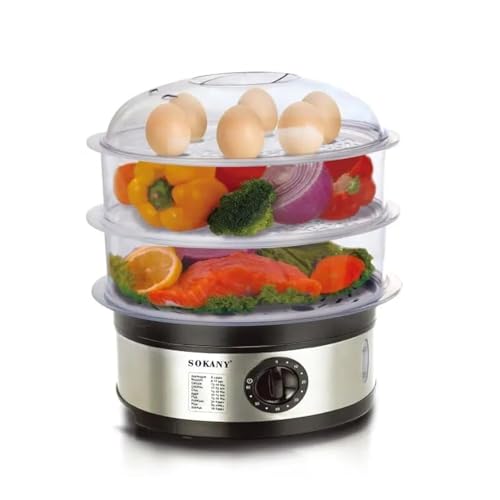 SOKANY - حلة طهي بالبخار من 3 طبقات، حلة طهي كهربائي بالبخار للخضروات من الفولاذ المقاوم للصدأ، سعة 11 لتر، بقدرة 650 وات، موديل SK-07018