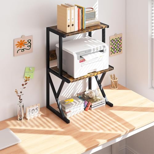 Huhote - حامل طابعة من 3 مستويات، طاولة طابعة من 3 طبقات، رف طابعة، منظم مكتب متعدد الاغراض، حامل طابعة بتصميم صناعي، حامل طابعة للمكتب والمنزل والمدرسة والفاكس والناسخة والماسح الضوئي (بني)