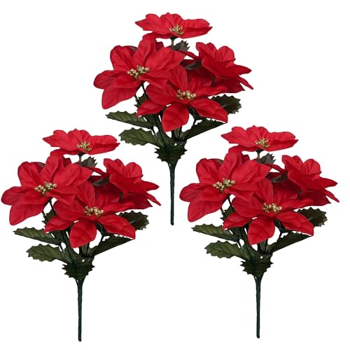 generic - 3 عبوات من شجيرات البوينسيتيا الاصطناعية - باقات بوينسيتيا حمراء صناعية 9.8 انش مع 7 رؤوس لكل منها، زهور صناعية لشجرة العطلات، قطعة مركزية للطاولة، ديكور داخلي وخارجي، مفرش طاولة يمكنك تركيبه بنفسك