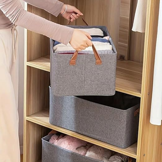 - تتميز بتصميم عصري أنيق مع مقبضين مخيطين بسيطة وعملية وسهلة الحمل من هنا إلى هناك مثالية للتخزين في الخزانة أو خزانة الكتان