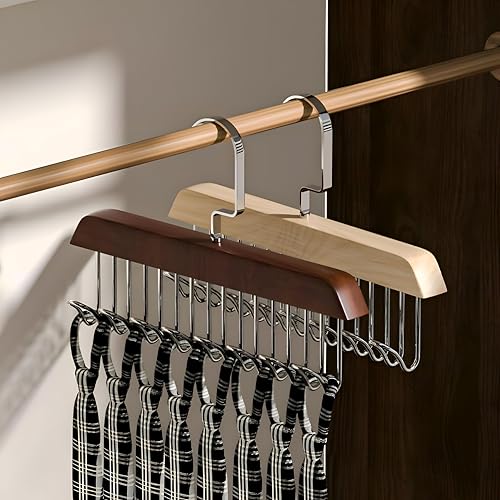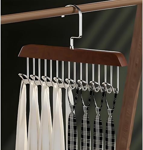 - يتميز هذا المنظم الخشبي بـ 8 خطافات معدنية دوارة تسمح لك بتعليق ما يصل إلى 24 قطعة - بما في ذلك ربطات العنق والأحزمة والأوشحة وحقائب اليد - عموديًا، مما يوفر مساحة خزانة أكبر بنسبة تصل إلى 70% من الشماعات التقليدية، مما يجعله مثاليًا لمناطق المعيشة الصغيرة أو الخزائن المشتركة.