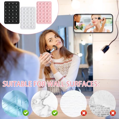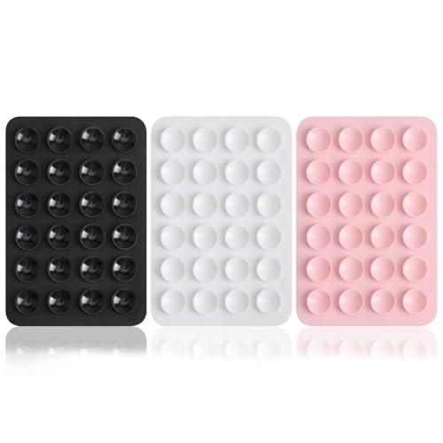 Qkhcable - حامل جراب موبايل بالشفط من السيليكون، حامل موبايل بقاعدة تثبيت بالشفط غير قابل للانزلاق، 3 قطع داخل العبوة من حامل موبايل مثبت دون استخدام اليدين للجدار لمراية الاستحمام والسيارة (أبيض، أسود، وردي)