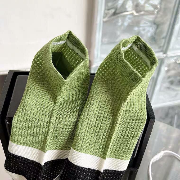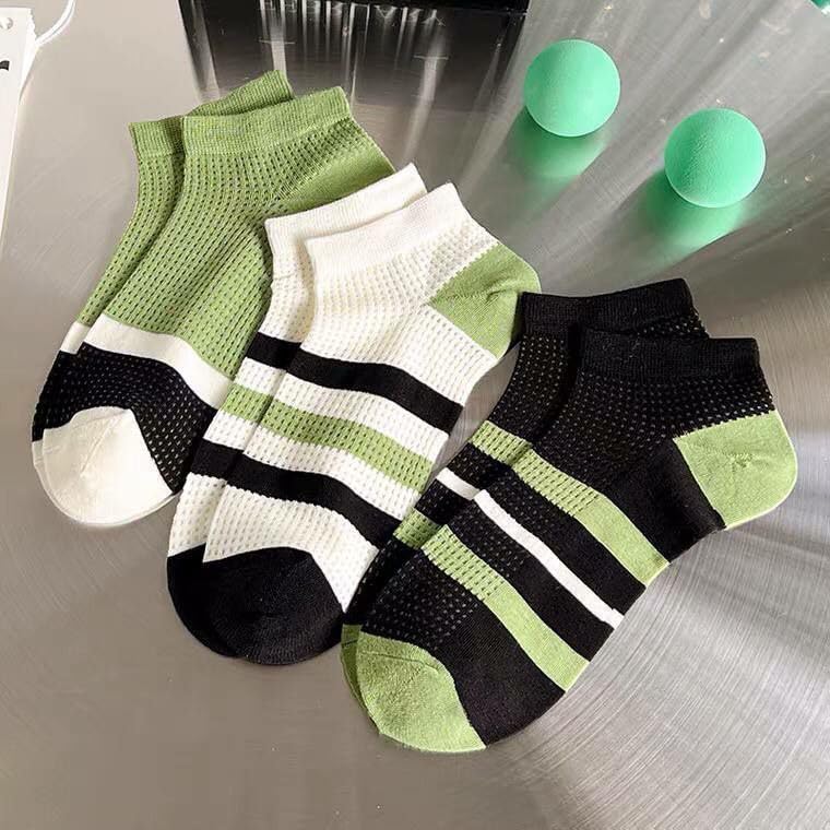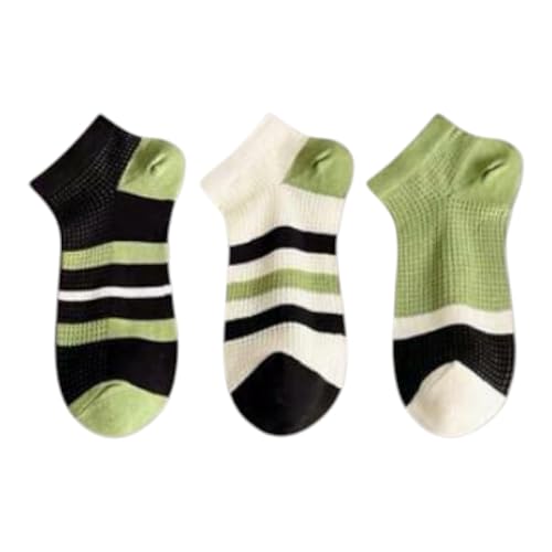 Generic - 3 جوارب قصيرة مخططة، مجموعة متعددة الألوان بتصميم عصري، أخضر وأبيض وأسود