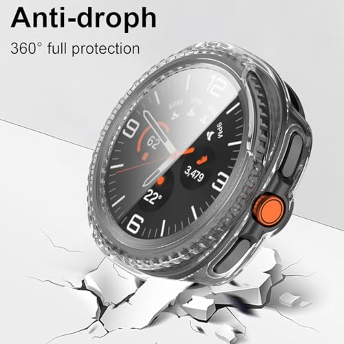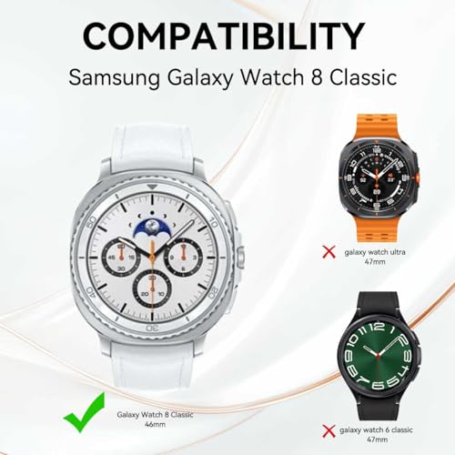 - 【التصميم】جراب واقي (عبوة من 3 قطع) مع شاشة حماية مدمجة من الزجاج المقوى. مصمم خصيصًا لساعة سامسونج جالاكسي ووتش 8 كلاسيك (47 ملم).