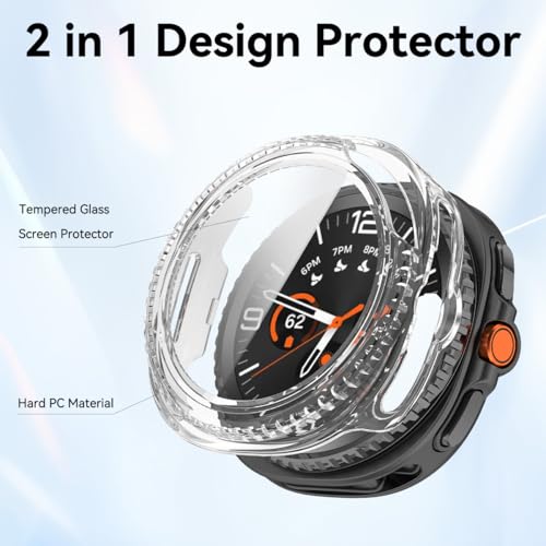 - 【مادة فاخرة】مصنوع من البولي كربونات الصلب والقوي. خفيف الوزن ولكنه شديد التحمل أيضًا. شاشة حماية مدمجة من الزجاج المقوى بدرجة صلابة 9، تحمي ساعتك الذكية بالكامل.