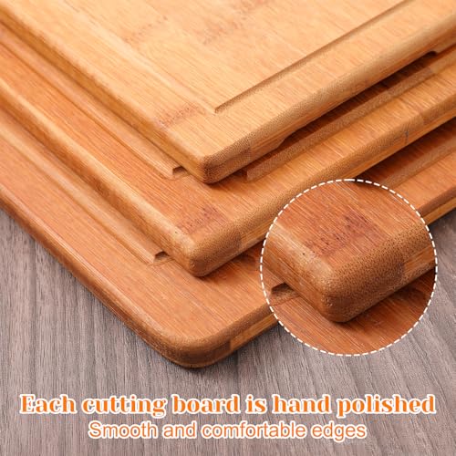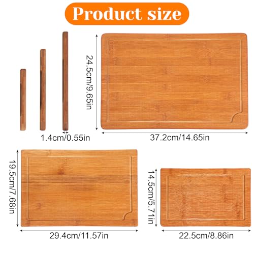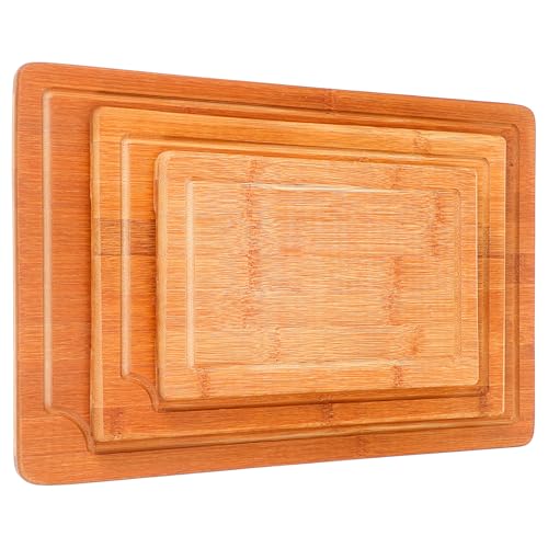 Aphumedc - مجموعة الواح تقطيع من الخيزران مكونة من 3 قطع، الواح تقطيع خشبية سميكة للغاية للمطبخ، الواح تشاركوتيري كبيرة بمقابض جانبية واخاديد عصير، مكعبات جزار خضروات عضوية، طاولة مطبخ من الخشب الصلب