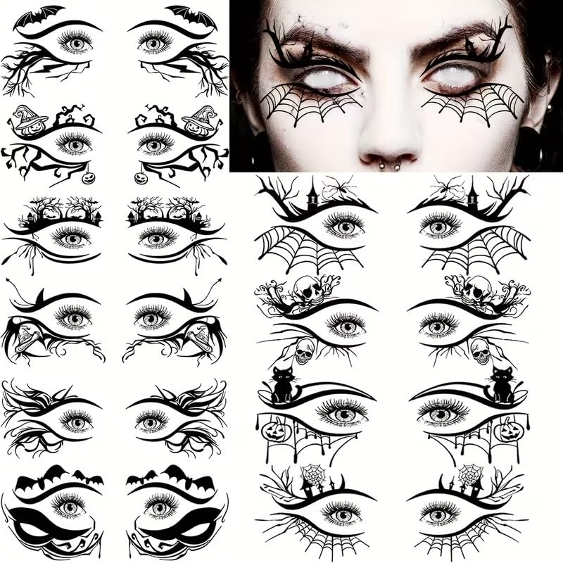 - 【ملصقات تحديد العيون للهالوين】ستحصل على 10 أزواج من ملصقات ظلال العيون المؤقتة للهالوين في 10 أنماط مختلفة، والتي تبدو حقيقية وطبيعية. يمكنك استخدامها بسهولة ويمكن أن تضيف ملصقات الوشم جوًا أكثر احتفالية.