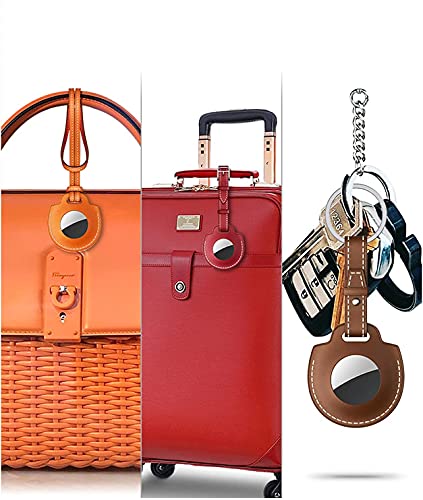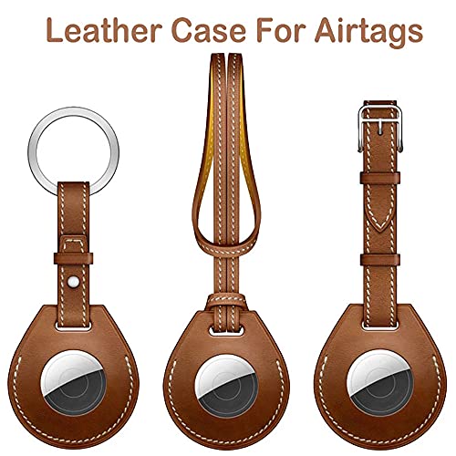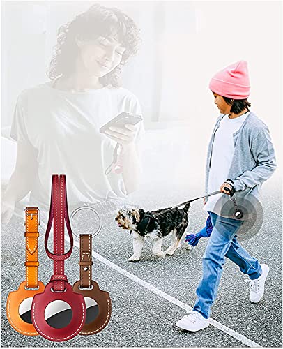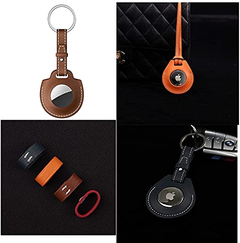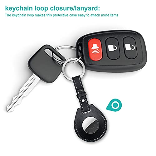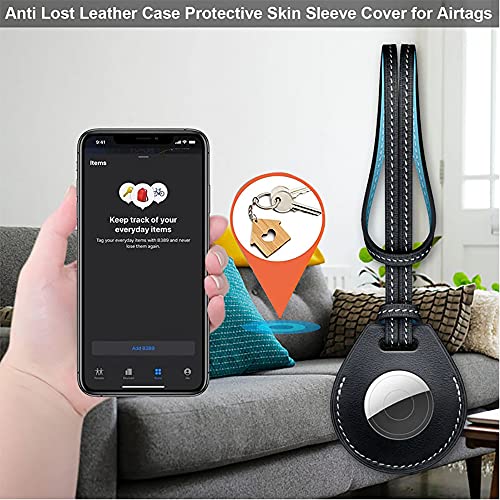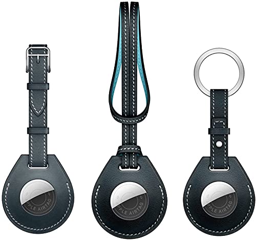 通用 - جراب حماية لحمل جهاز اير تاج مصنوع من الجلد مزود بسلسلة مفاتيح مانعة للفقدان من 通用، لون أزرق، 3 قطع
