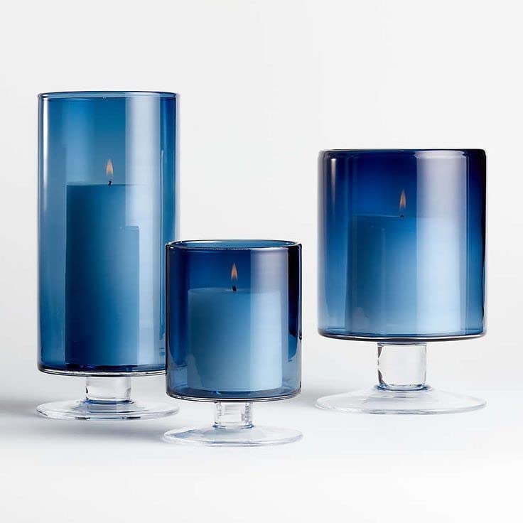 عام - 3 قطع من حاملات الشموع ذات اللون الازرق ذات الأعمدة الزجاجية ، مزهرية زجاجية للزهور ، حامل شموع إعصار للشموع العمودية ، مزهرية كبيرة من الإعصار لعيد الميلاد والهالوين وقطع مركزية لغرفة الطعام.