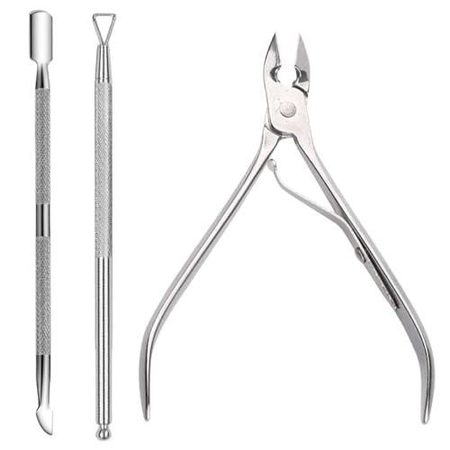 YJDEWohovv - مجموعة أدوات إزالة الجلد الزائد من الفولاذ المقاوم للصدأ، أداة دفع الزوائد اللحمية ومكشطة الزوائد اللحمية، وأداة قص احترافية للمانيكير والباديكير لأظافر اليدين والقدمين - 3 قطع