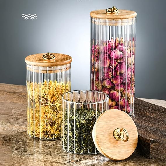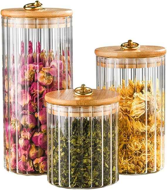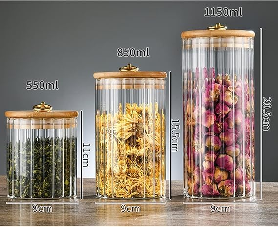 Generic - 3 قطع من برطمانات زجاجية عالية الجودة محكمة الإغلاق مصنوعة من زجاج البوروسيليكات، علب حبوب قهوة بأغطية، صندوق تخزين للمطبخ، للبسكويت، الأرز، الدقيق، الشا