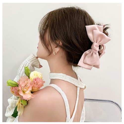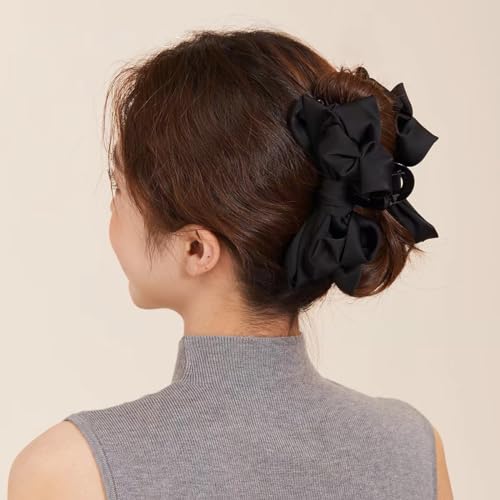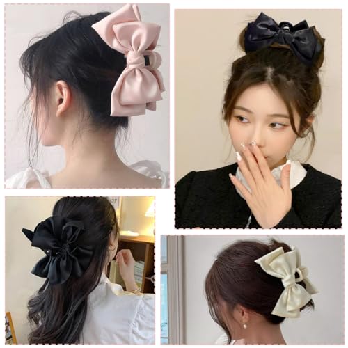 GeoGeoDIY - مشبك شعر كبير على شكل فيونكة من الساتان للنساء والبنات ذوات الشعر الطويل الكثيف بطول 15 سم، تصميم شريط شعر أنيق لجميع أنواع الشعر، 3 قطع (أسود + أبيض + وردي)