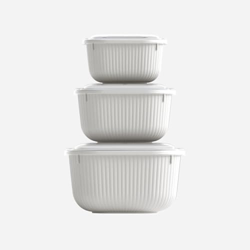 Generic - علب تخزين طعام من لاين سيريز، مصنوعة من البلاستيك، مجموعة من 3 قطع، بسعات 600 مل و1 لتر و1.8 لتر