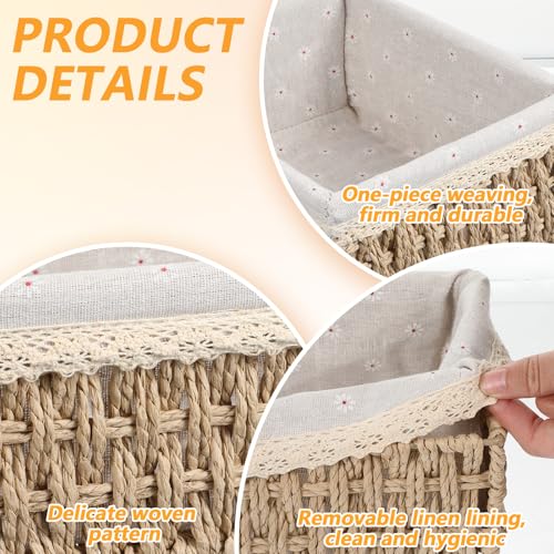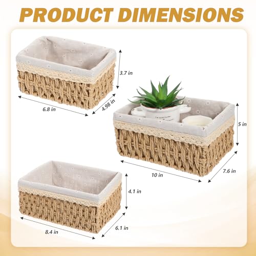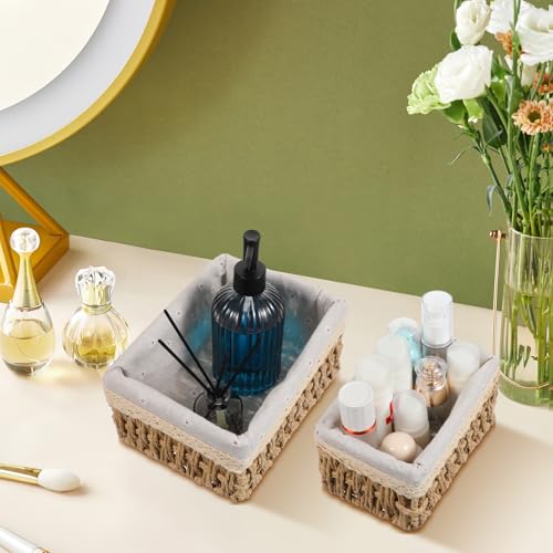 - 【سلال صغيرة للحمام】- هذه السلال الدائرية المصنوعة من حبل الورق مثالية لتخزين المفاتيح، وسلال تخزين صغيرة لسطح الحمام، وسلال صغيرة للطاولة، وسلال ديكور لغرفة المعيشة، ومنظمات أدراج السلال، وسلال مبطنة سطحية، وسلال تخزين للمكتب. يمكن لهذه السلال المستطيلة الصغيرة تخزين أجهزة التحكم عن بعد، وورق التواليت، والفوط، ومستحضرات التجميل، وإكسسوارات الزينة، وغيرها من الأغراض الصغيرة المتنوعة.