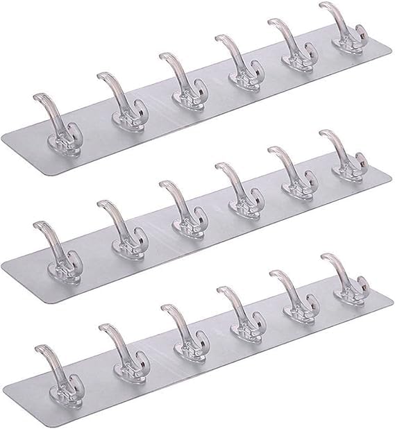 Generic - خطاف تعليق شفاف متعددة الوظائف خطافات حائط بلاستيكية شفافة ذاتية اللصق شديدة التحمل لتعليق الملابس والمفاتيح والطواقي والأرواب والفوط والمناشف 3 قطع - 6