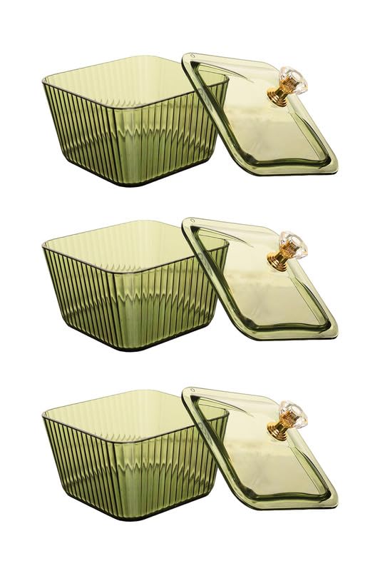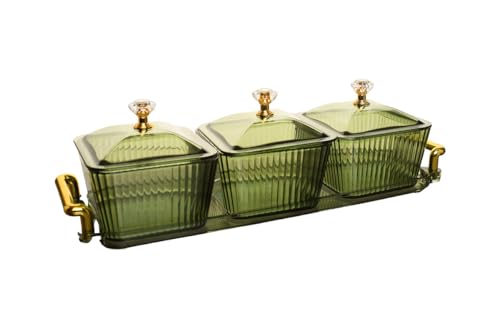 Generic - طقم حاويات للوجبات الخفيفة من الاكريليك مع قاعدة بلاستيكية ومقابض من 3 قطع، اخضر داكن