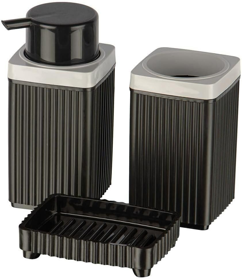 - تصميم أنيق وأنيق: جرب تجربة استخدام مريحة ومرتبة مع مجموعة الحمام العصرية المكونة من 3 قطع. تتميز بتصميم مربع أنيق يبرز أي حمام أو مطبخ، مع مادة بلاستيكية متينة مع جزء خارجي أنيق وسهل التنظيف