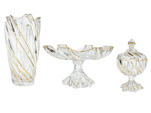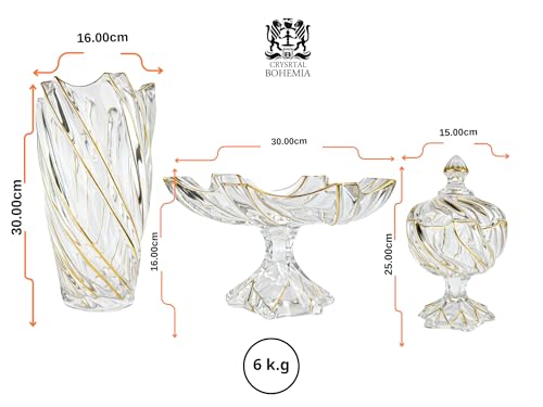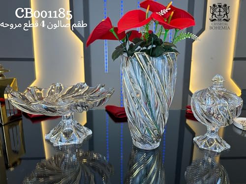 - طقم كريستال فاخر: مجموعة أنيقة من القطع الكريستالية المزخرفة بنقوش تقليدية وتفاصيل ذهبية اللون تضيف لمسة من الفخامة والرقي لديكور منزلك