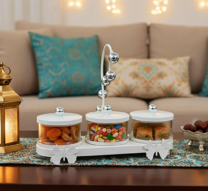 Generic - طقم تقديم بتصميم فيونكة عدد 3 قطع – شكل زخرفي مميز – مناسب للضيافة والتقديم في المناسبات FO