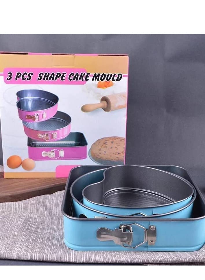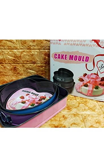Generic - طقم صواني كيك و تشيز كيك مانعة للالتصاق أشكال مزودة بإبزيم مكون من 3 قطع، فضي