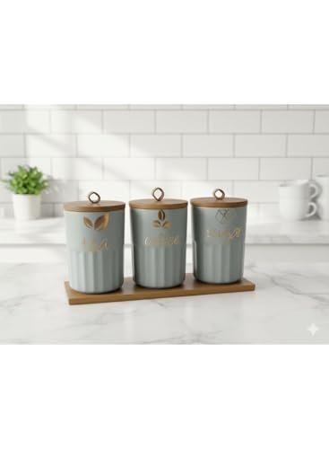 Generic - طقم قهوة مكون من 3 قطع، غطاء وقاعدة خشبية